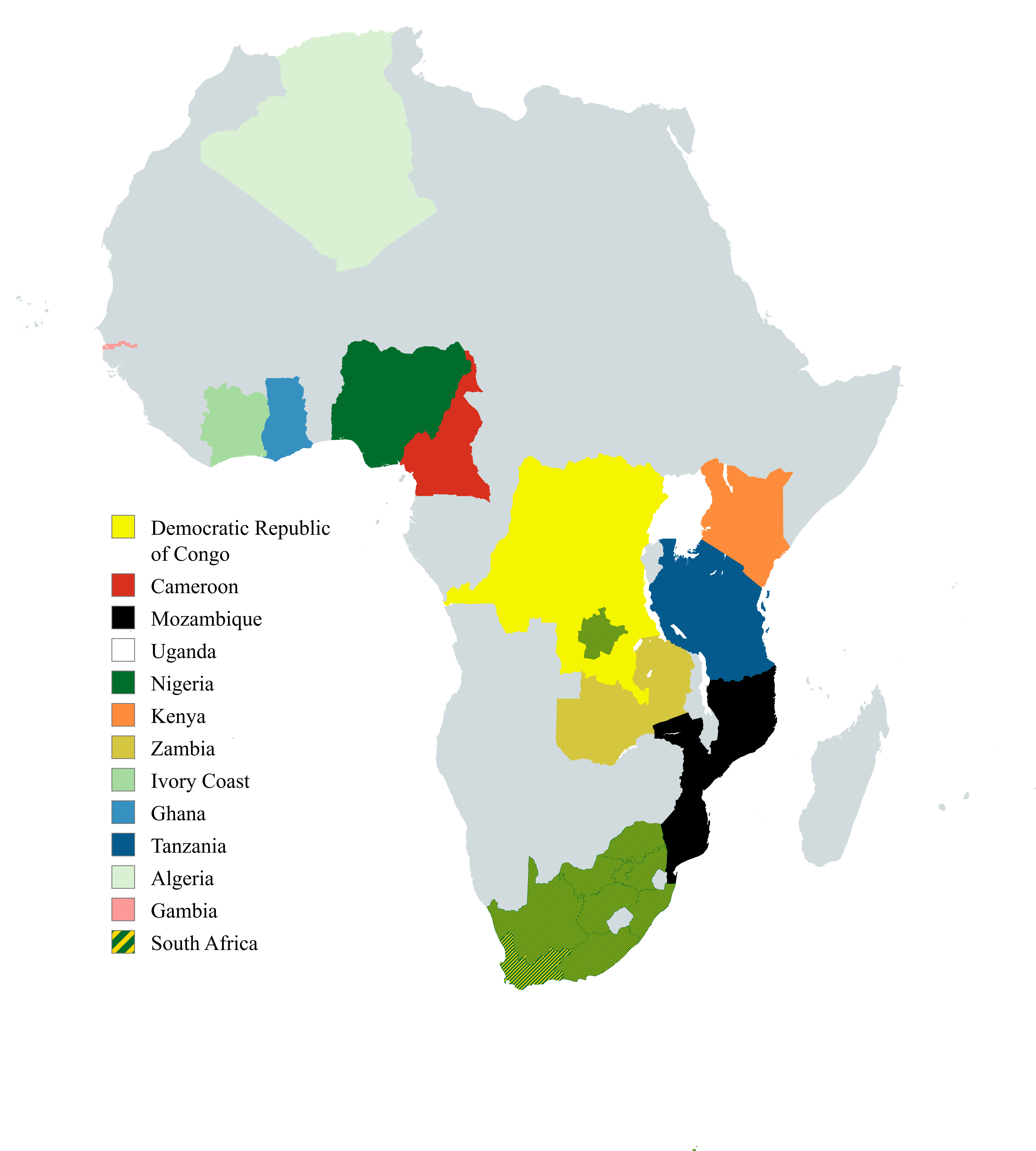 We operate out of our offices situated in Cape Town, South Africa. We cover the following African markets: South Africa, Democratic Republic of Congo, Cameroon, Mozambique, Uganda, Nigeria, Kenya, Zambia, Ivory Coast, Ghana, Tanzania, Algeria, and Gambia.